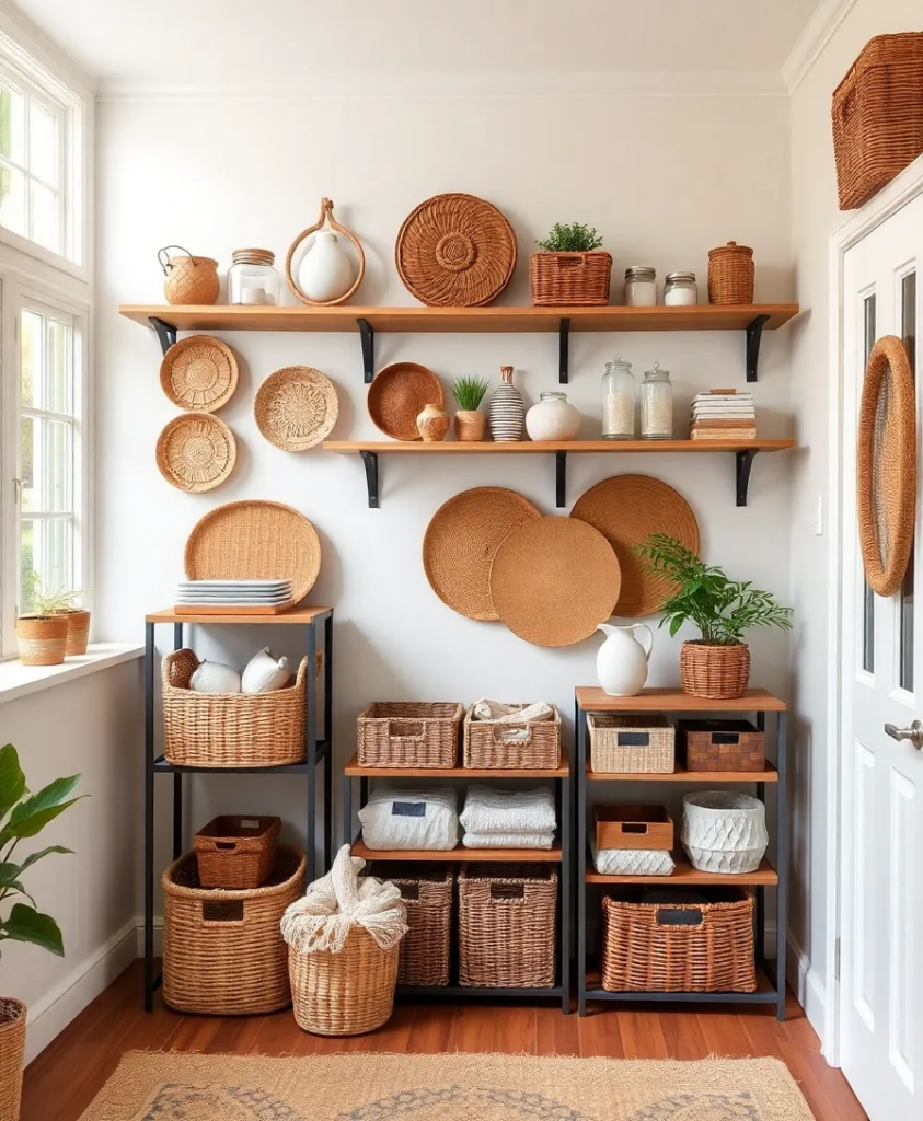 Imagine a cozy living room featuring woven baskets that blend seamlessly into your decor, making tidying up a breeze.